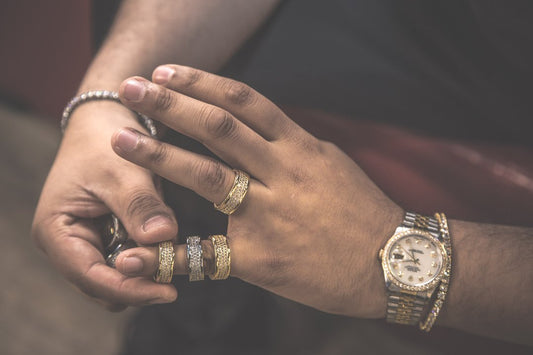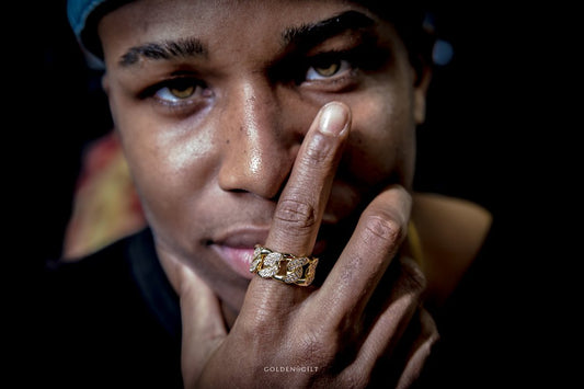 Golden Gilt Studded Cuban Link Ring