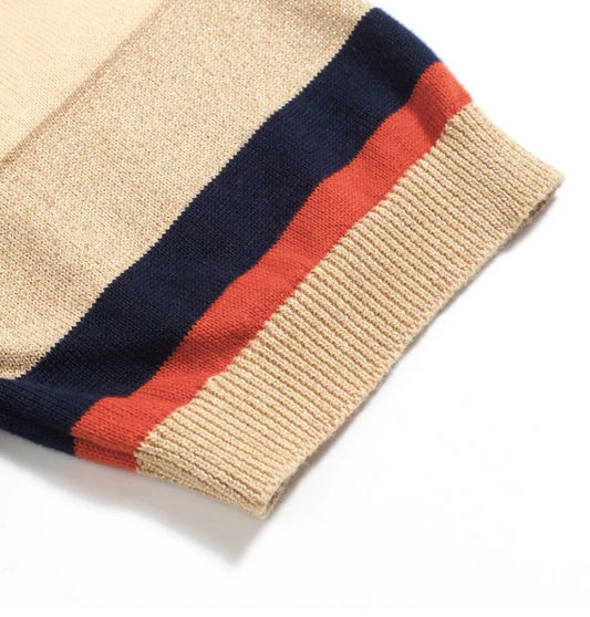 The Premium Regent Ribbed Knit Polo - Sand, Navy & Red