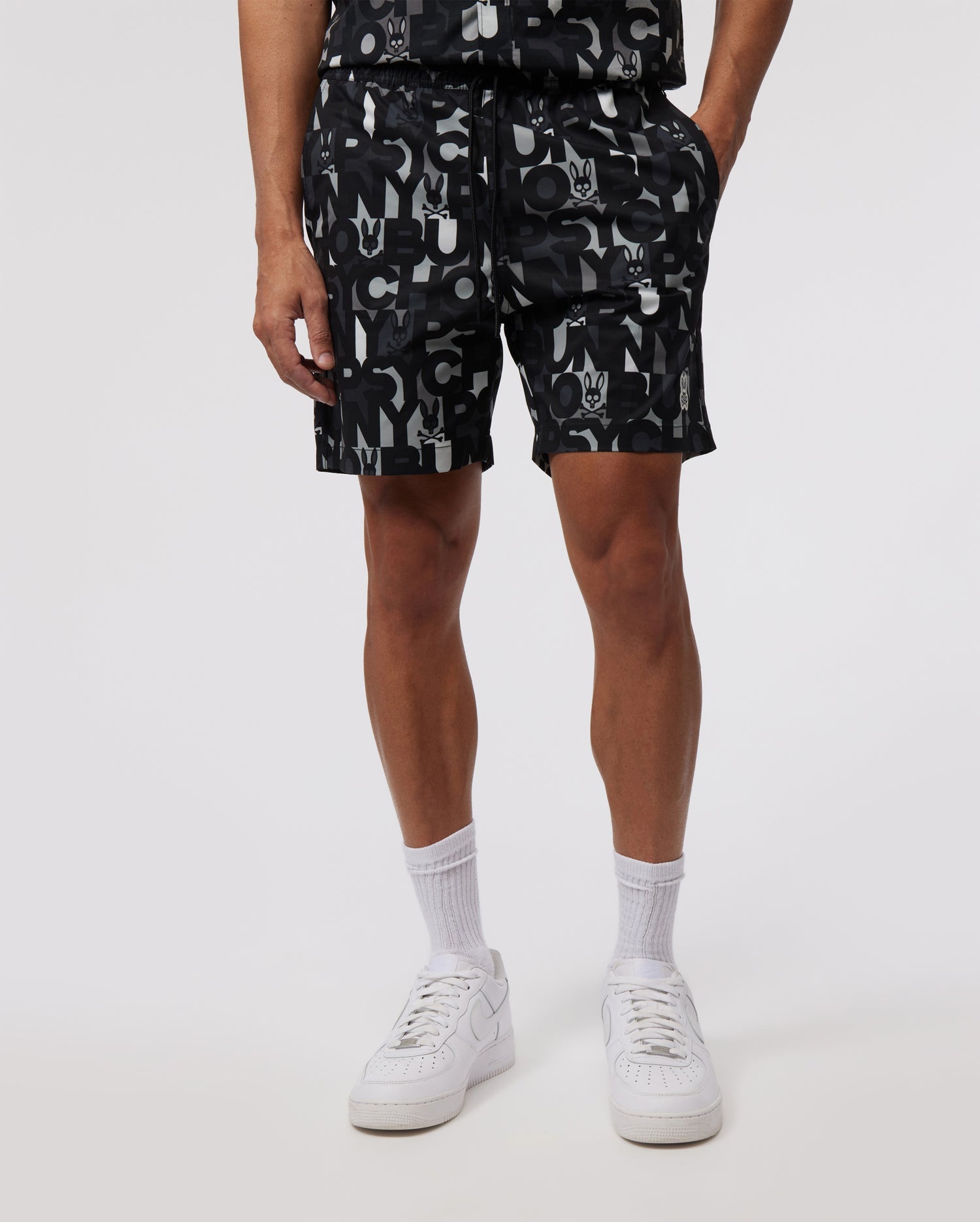 Crafted from quick-drying tafetta, the men's Bagh swim trunk features a bold graphic all over Bunny logo print. Includes waterproof carry bag.