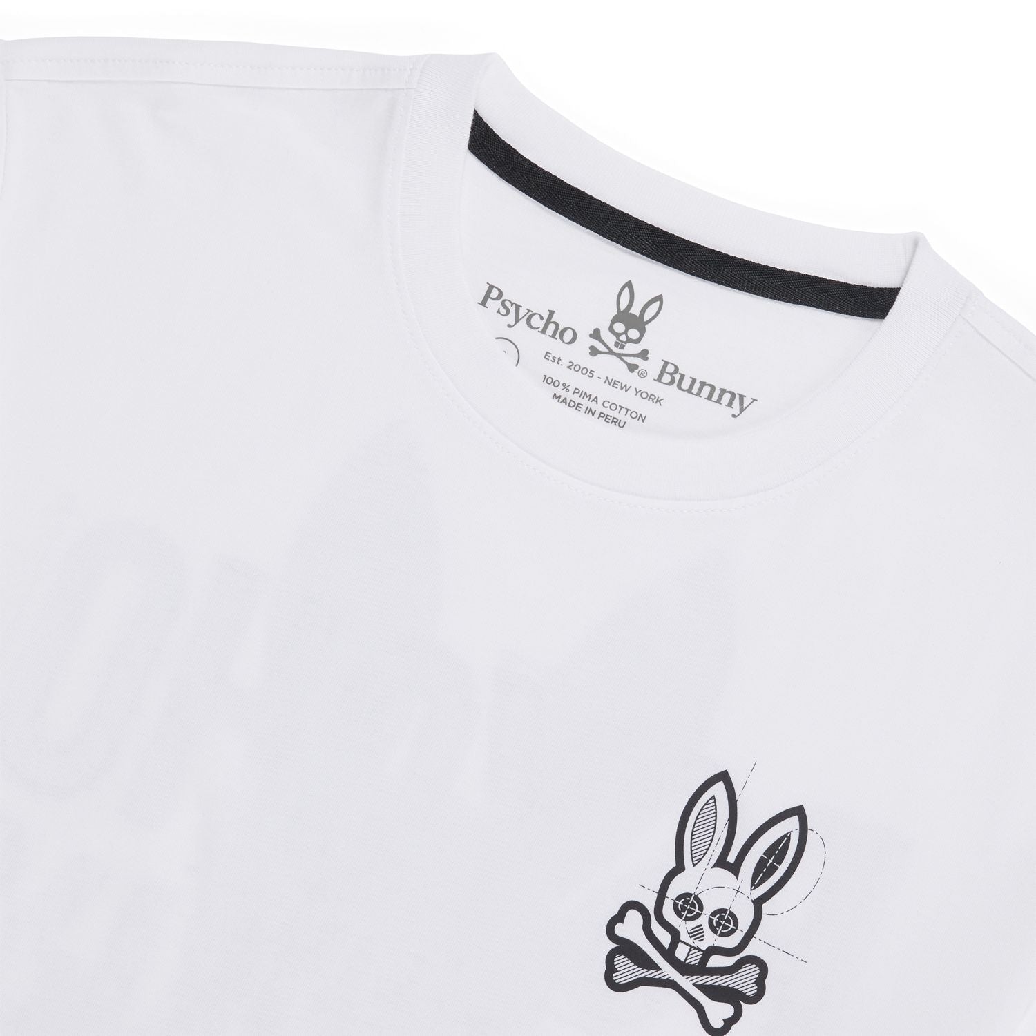 This mens graphic tee's got your back when it comes to summer style. Crafted from only the softest Pima cotton, this graphic tee is cut a little bit longer than the average T-shirt, with a trim fit that hits the sweet spot between classic and slim. Taped seams in the shoulders and peerless craftsmanship ensure it never loses that perfect shape. This graphic tee features printed Psycho Bunny branding on the left chest, with a bold Psycho Bunny graphic screen printed on the back.