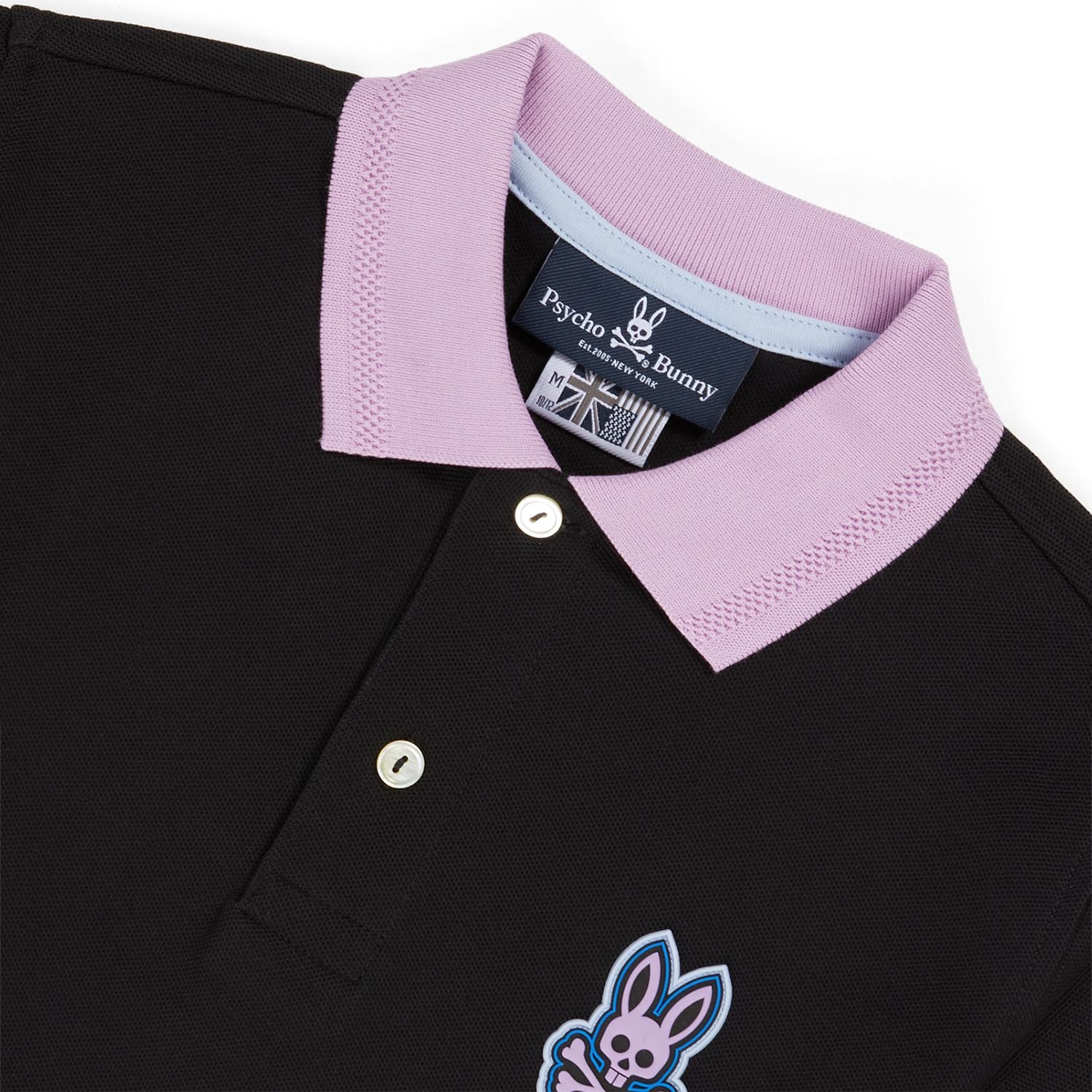 This mens Fashion Polo adds a touch of texture — and character — to any look. Crafted from 100% Pima cotton, this polo is outfitted with trusted luxe trimmings: mother-of-pearl buttons, taped seams, side vents, and a collar that never rolls. This polo is cut a little bit longer than the average polo and tailored to fit you perfectly. Taped seams in the shoulders and a unique diamond knit piqué ensure it never loses that perfect shape. This polo features sophisticated woven detailing at the collar, offering subtle contrast in both color and texture, while a rubberized Psycho Bunny logo rounds things off on the left chest.