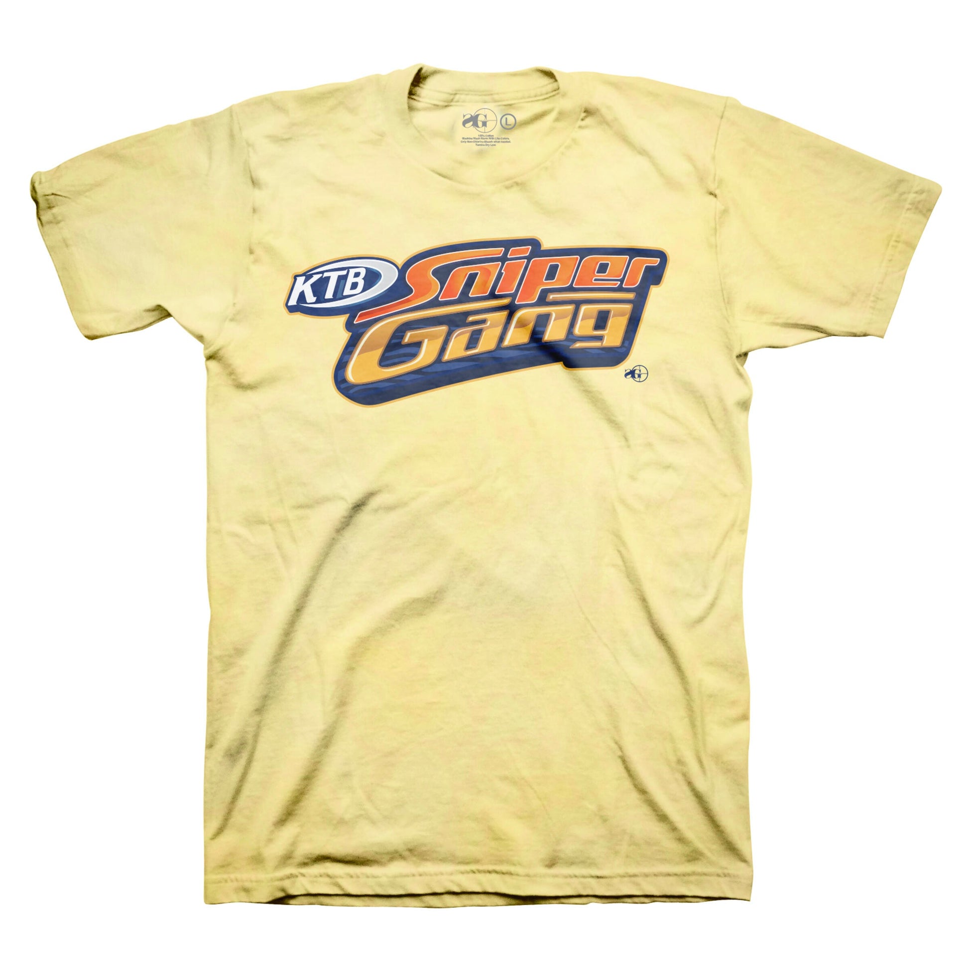 Tag-less durable rib neckband. Sniper Gang text graphic with Soaker font. Garments are true to size with an athletic fit.