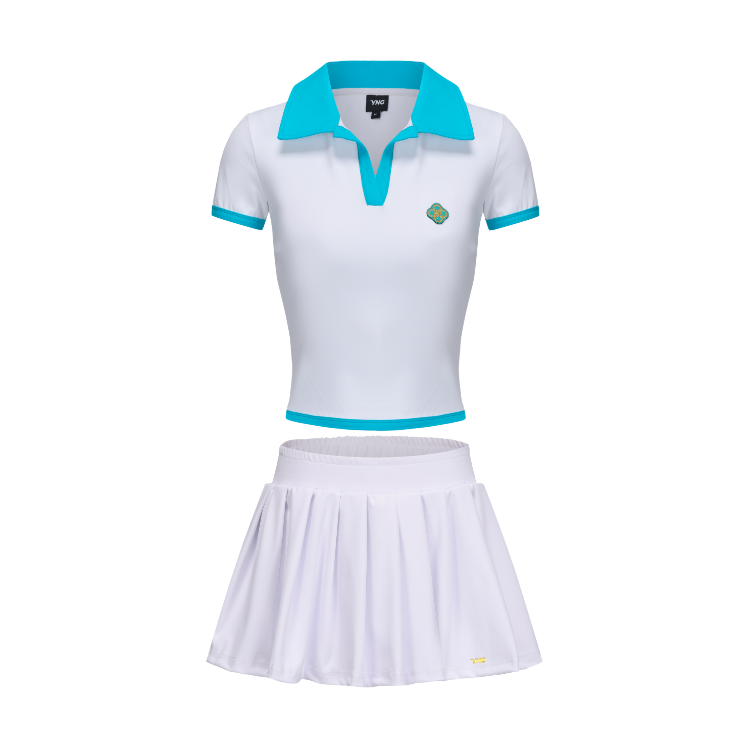 The Tennis Skirt serves up a sharp silhouette with effortless versatility. Designed with a mid-rise waistband and fluid pleats, it features built-in shorts for coverage and freedom that blends classic court aesthetics with everyday wearability. Subtle YNG Gold logo emblem detailing and clean lines give it a polished look that plays well with sneakers, crop tops, or oversized tees.